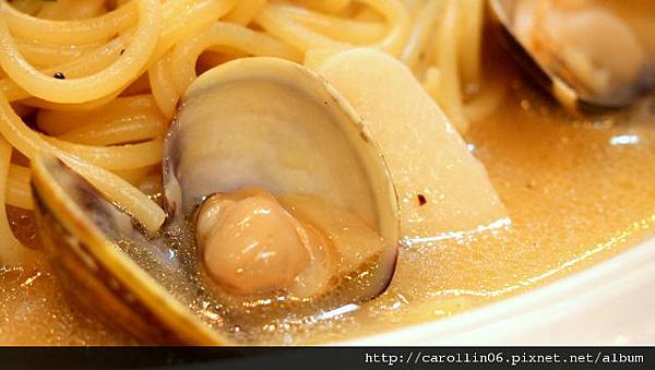 他蛤蜊都胖胖的很好吃,整個麵都吃的到淡淡的蛤蜊鮮美香味。其實就跟大多數白酒蛤蜊麵一樣,這麵也吃不大出來那白酒的味道,反倒是蒜味很香濃,整個有種台菜的親切感(?)其實這麵我看網路上很多人評價都不是太愛,受歡迎的主要是那些白醬、青醬、咖哩的重口味濃稠醬料,但我喜歡這種比較清的口味。雖然白醬的味道我也很喜歡,但是很容易膩啊...還是這種怎吃都吃不膩。